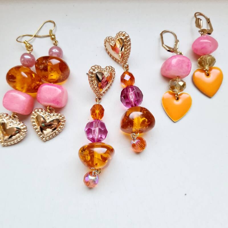 Mooie oranje/roze oorbellen gemaakt van verschillende kralen: facetgeslepen glas en kunststof kralen Deze oorbellen zijn handmade by Into Accessories. Alle sieraden worden gemaakt van gerecyclede materialen. Een hoop sieraden krijgen hierdoor een tweede leven vaak in een totaal andere vorm. We are INTO zerowaste💜