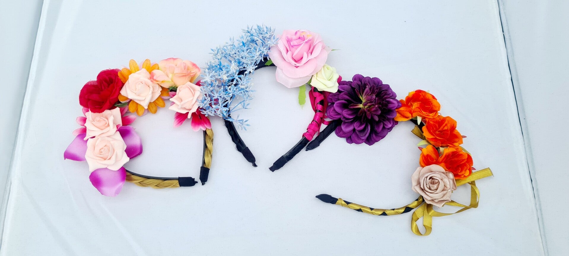 Bijzonderheden: Deze flowercrown is een met de handgemaakt van gerecyclede onderdelen en uniek. Er bestaat er niet nog 1 van.Super leuk voor speciale gelegenheden of een festival.