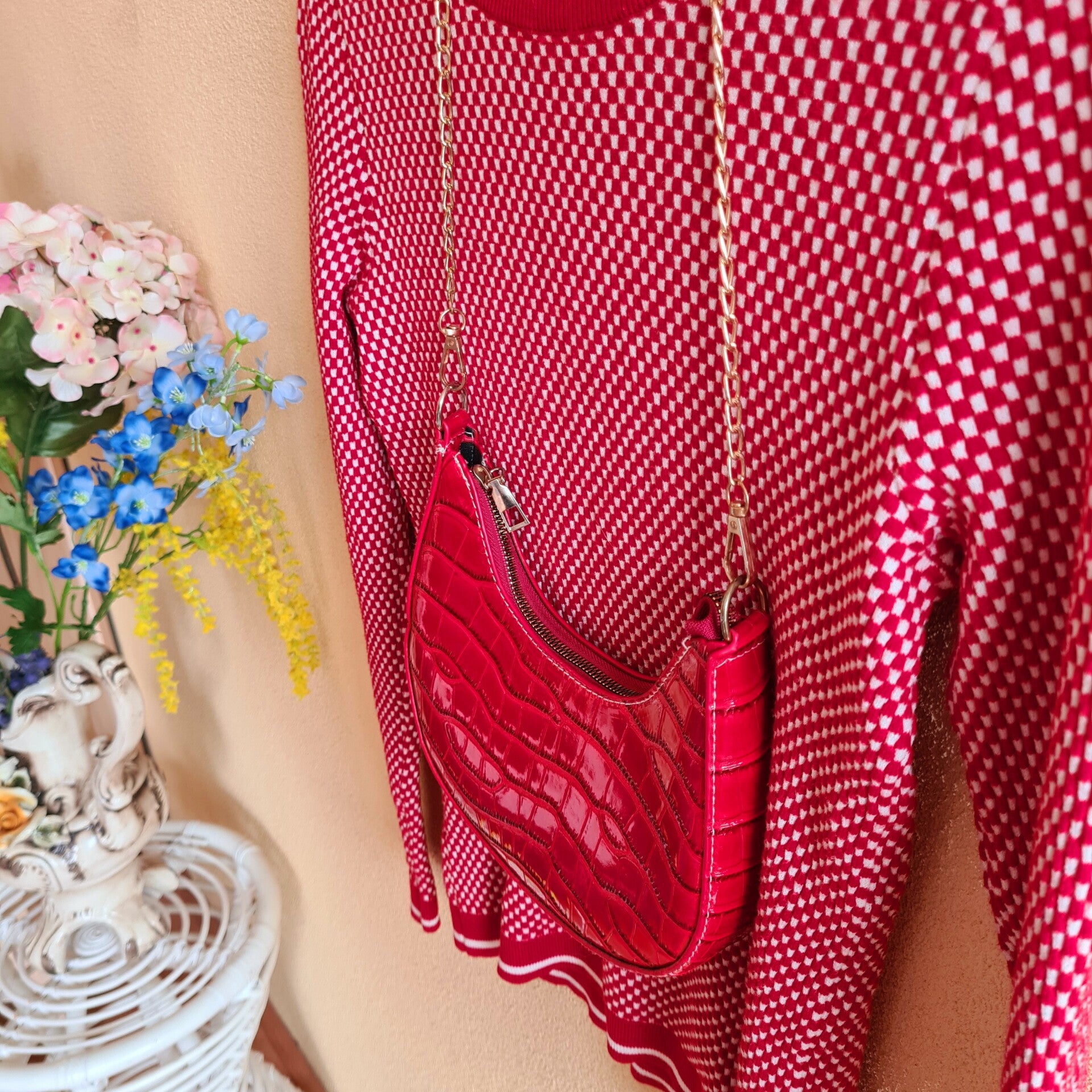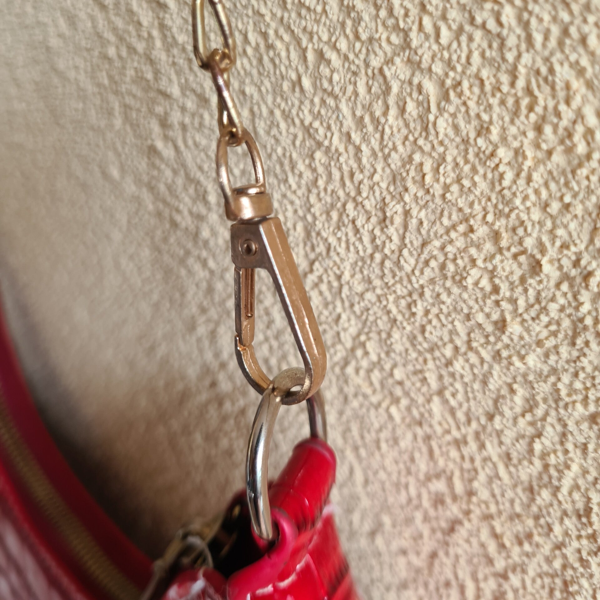 Te gek tasje in het lak met een crocoprint. Het hengsel is een goudkleurige ketting die je er makkelijk af kan klikken. De tas heeft 1 vak die sluit d.m.v een rits.Deze tas is leuk te combineren met de pullover rood-wit van Esprit en de zonnebril red diva.