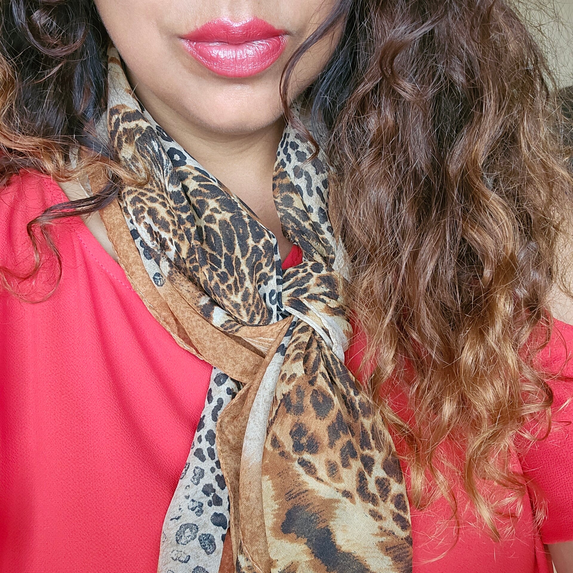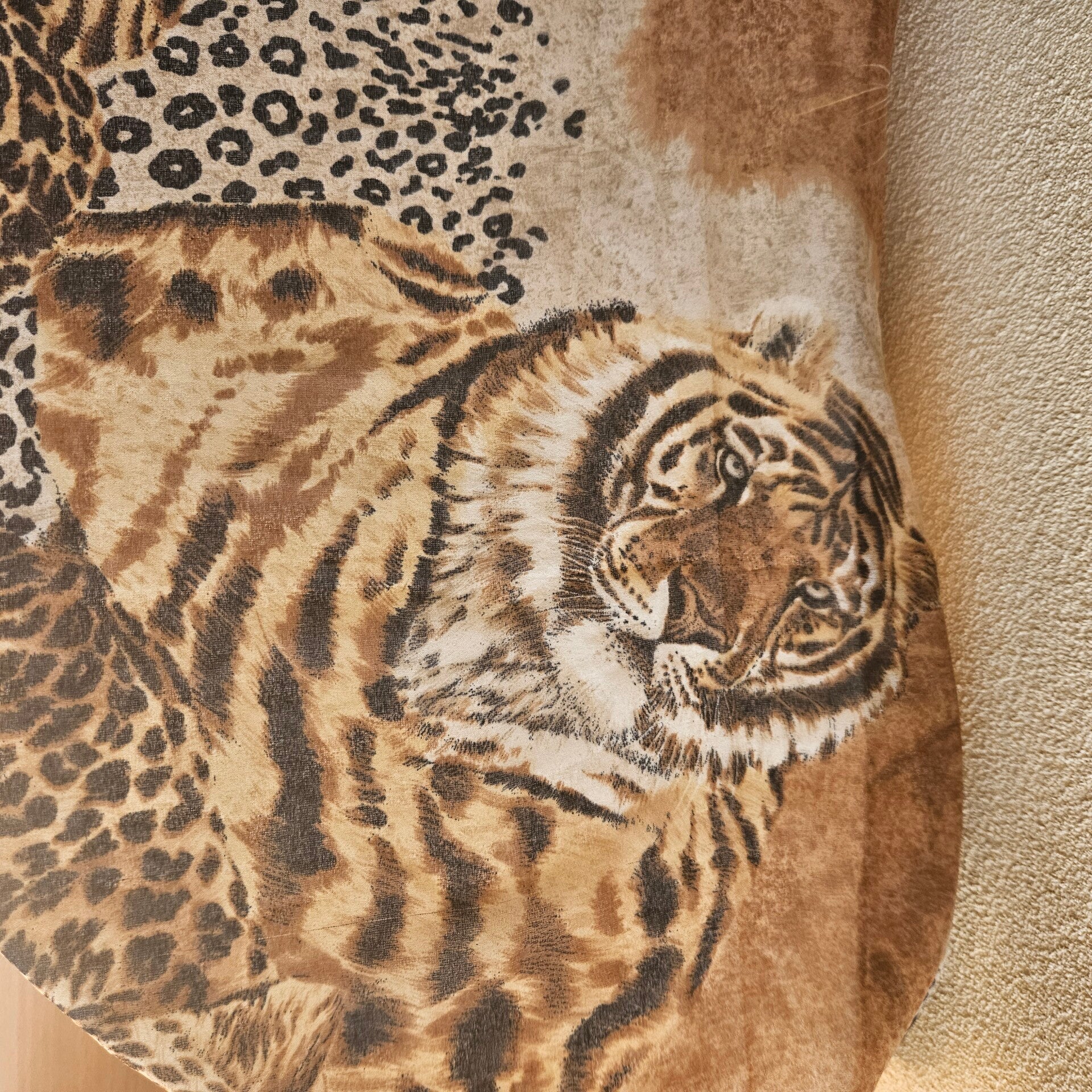 Iedereen houd van een tijgerprintje op zijn tijd. Maar dit is niet zomaar een basic tijgerprintje. Deze sjaal heeft een print met maar liefst 6 tijgers. Het is een lekker luchtig licht sjaaltje die je perfect kan combineren met denim en de zonnebril tijger. Ik heb hem zelf gecombineerd met een rode top. Deze print komt altijd goed tot zijn recht met rood, oranje en roze. Maar doe waar je je lekker bij voelt.