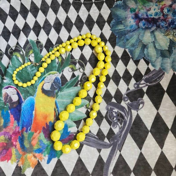 Met deze ketting val je zeker op. Met zijn te gekke gele neonkleurig facetgeslepen kralen maakt ie je outfit helemaal compleet. Combineer deze op een All black outfit of denim broek en het Tshirt tropicana en je bent ready to go.