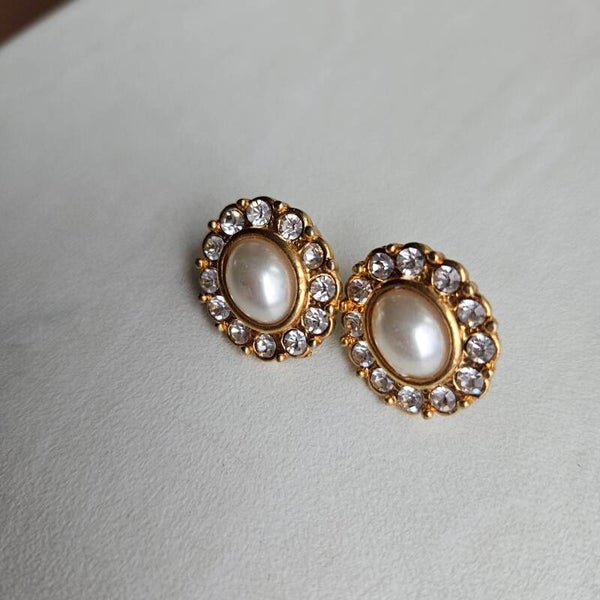 Wauw, wat een mooie oorknoppen! Deze goudkleurige oorbellen komen uit de jaren 90, bezet met een imitatie parel in het midden en strass steentjes er om heen. Het zijn echte tijdloze oorbellen en passen eigelijk overal bij. Al heb je een feestelijke outfit of gewoon een basic shirt met spijkerbroek met deze oorknoppen maak je je outfit compleet.