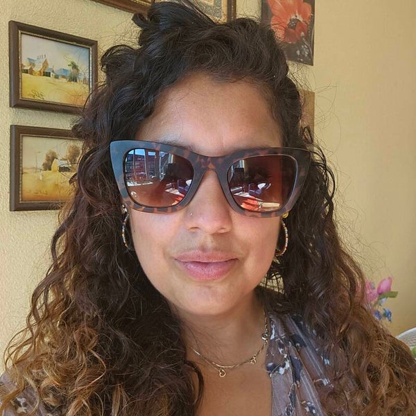 Bijzonderheden: de zonnebril heeft fijne caramelkleurige glazen. Waar je heel prettig doorheen kijkt