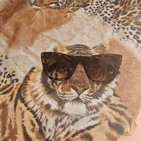 Te gekke zonnebril met een tijger montuur. Iedereen houdt wel van een tijgerprintje op zijn tijd. In de zomer wordt er altijd een zonnebril gedragen vanwege de zon. Maar vergeet niet dat de zonnebril ook een ultime accesoire is en je outfit compleet maakt. Dus draag deze gerust door in de herfst met de sjaal tijger.