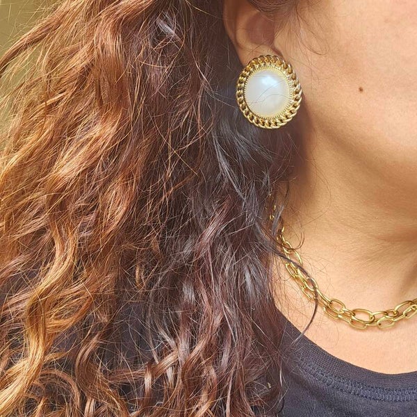 Deze prachtige oorbellen heb ik gevonden in een kringloop helemaal verstopt in de sieradenbak.Combineer deze beauties met een parelketting of verschillende gouden kettingen.