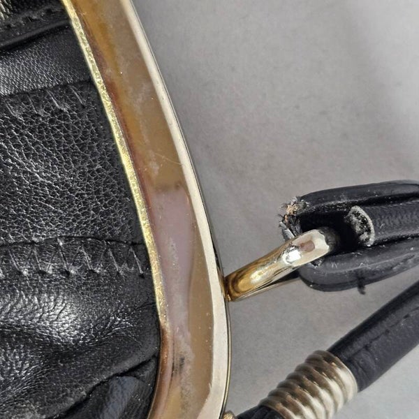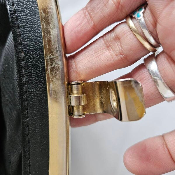 Bijzonderheden: Het goud is zo hier en daar versleten met de jaren.Maar de tas is verder in uitstekende staat!