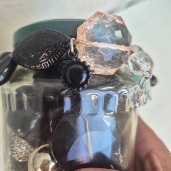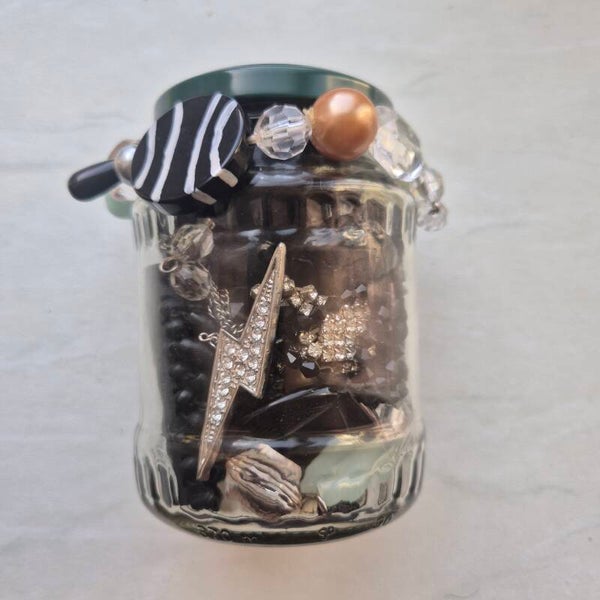 Ontdek deze geweldige mystery sieradenpot met stoere sieraden in zwart- en zilvertinten. De pot bevat zorgvuldig geselecteerde pre-loved, tweedehands en vintage sieraden, zoals oorbellen, kettingen en meer.