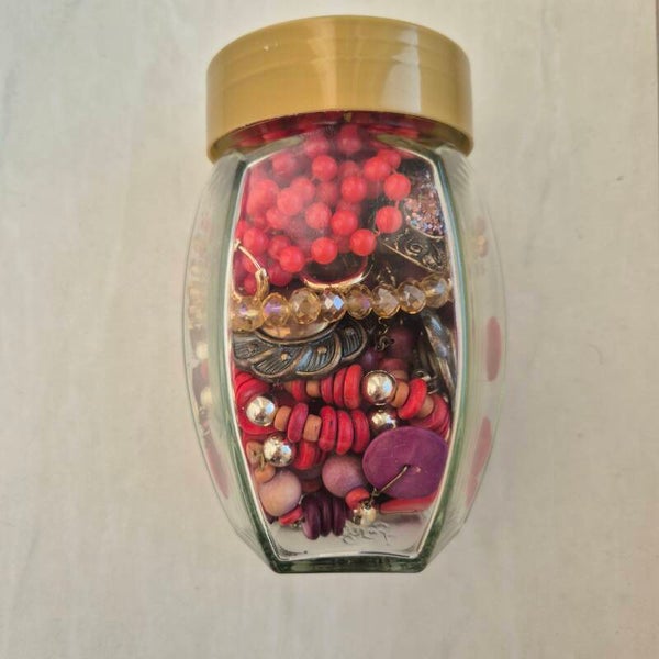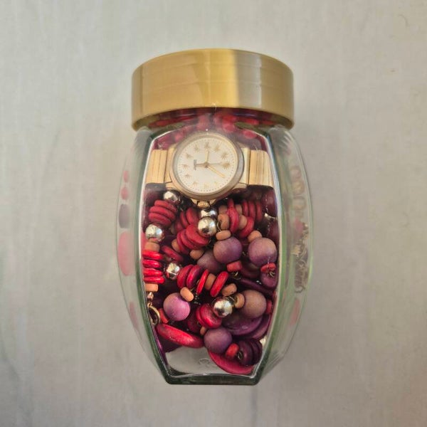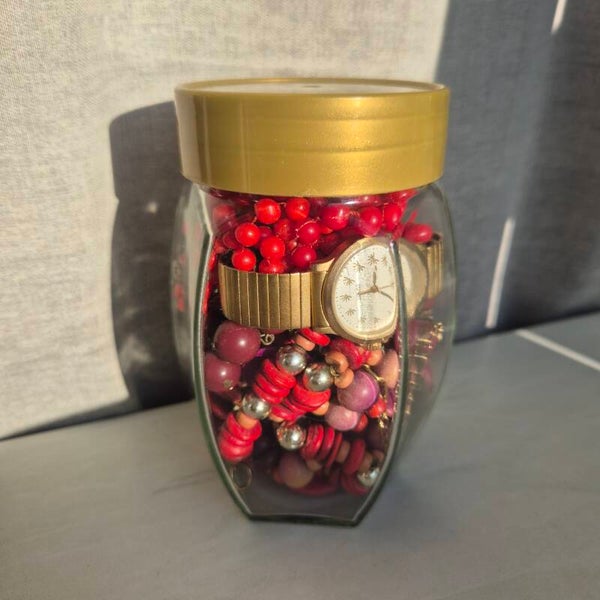Laat je verrassen door onze prachtige mystery sieradenpot in warme paarse, rode en gouden tinten, geïnspireerd op de kleuren van de herfst. Deze pot bevat zorgvuldig geselecteerde pre-loved sieraden, perfect als verrassingspot sieraden voor jezelf of als cadeau voor haar.