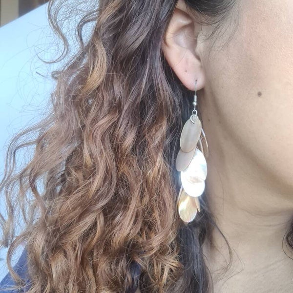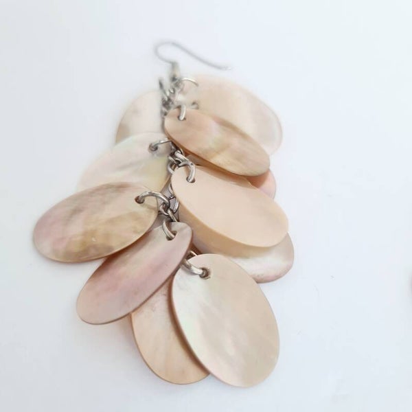 Leuke vintage oorbellen gemaakt van parelmoer schelpkralen. Deze oorbellen zijn van het merk. MANOUK en zijn handpicked by Into Accessories.Ze passen perfect in onze collectie.