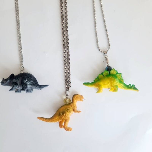 Te gekke dino ketting handmade by into-accessories . Dit item komt uit onze ´Animal Necklaces´ collectie en is uniek in zijn soort. Alle sieraden worden gemaakt van gerecyclede onderdelen. We are INTO zerowaste.