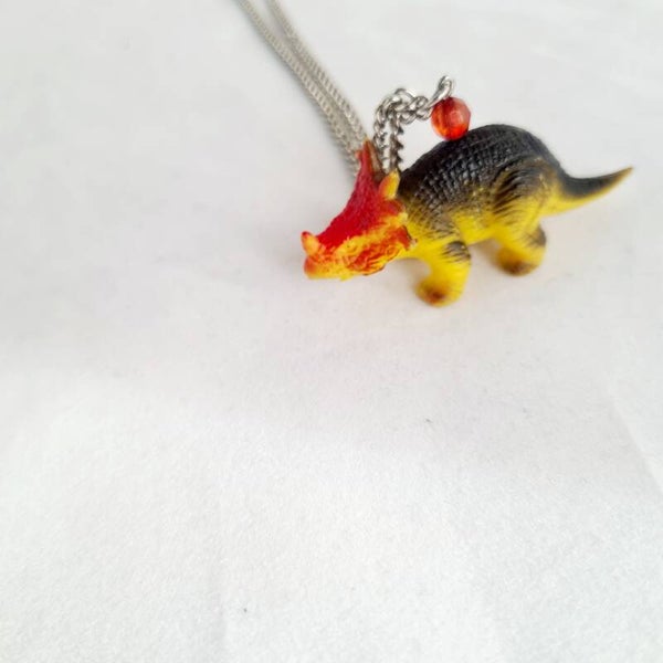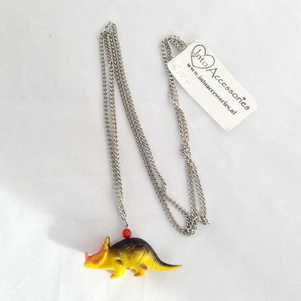 Te gekke dino ketting handmade by into-accessories . Dit item komt uit onze ´Animal Necklaces´ collectie en is uniek in zijn soort. Alle sieraden worden gemaakt van gerecyclede onderdelen. We are INTO zerowaste. Deze ketting heeft geen karabijnsluiting.